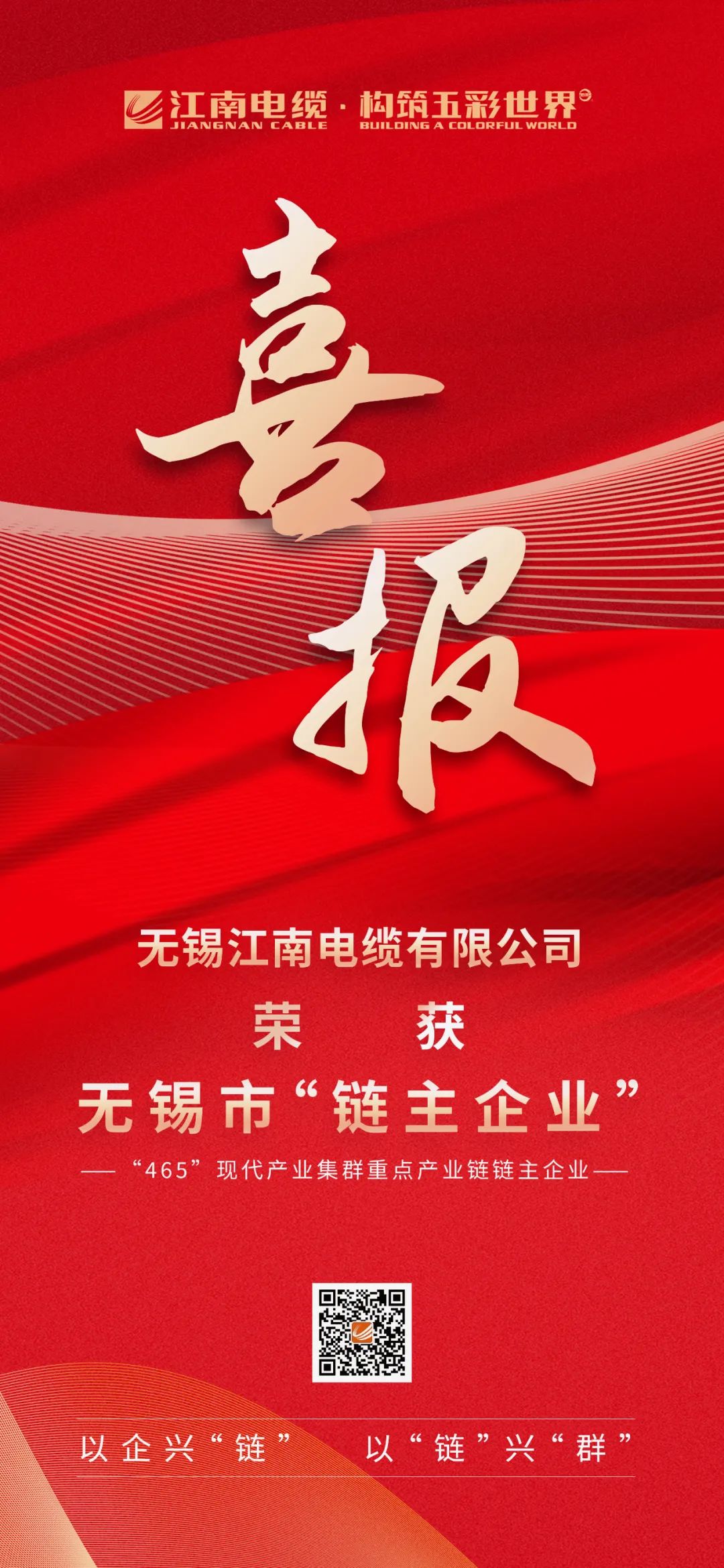 【喜報(bào)】江南電纜榮獲無錫市“鏈主企業(yè)”!